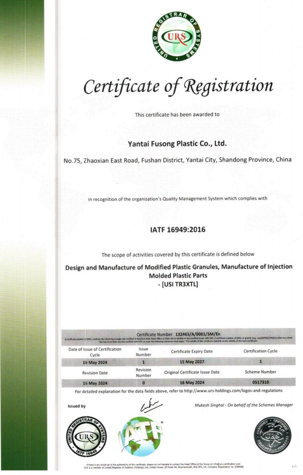 公司擁有多條國內(nèi)專業(yè)的平行雙螺桿造粒生產(chǎn)線,全自動連續(xù)化生產(chǎn),改性塑料年產(chǎn)能達20000余噸,產(chǎn)品質(zhì)量穩(wěn)定;公司奉行“信譽為先,質(zhì)量為本”的服務(wù)宗旨,于2009年順利通過ISO9001:2008質(zhì)量管理體系認證,于2014年執(zhí)行 ISO/TS16949:2009質(zhì)量管理體系,于2017年升級證書IATF16949:2016。公司具備完整的質(zhì)量控制體系,完善的檢測、試驗設(shè)備及獨立的物性數(shù)據(jù)庫,確保能夠為客戶提供優(yōu)質(zhì)的產(chǎn)品及服務(wù),獲得了業(yè)界廣泛的好評。